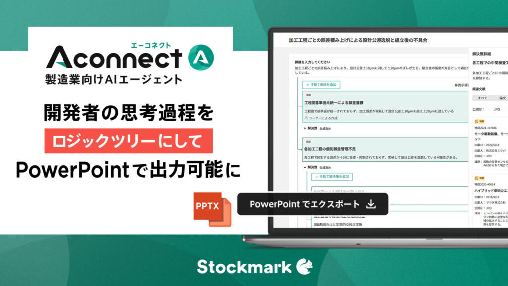 ストックマーク株式会社(本社:東京都港区、代表取締役CEO:林 達、以下:当社)が提供する製造業向けAIエージェント「Aconnect」は、製造業の研究開発や製品開発における技術課題の解決アプローチ探索を支援する「技術探索エージェント機能」の新機能をリリースしました。