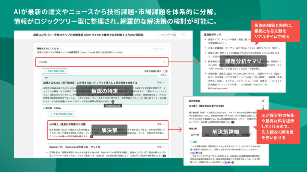 仮説立案と同時に「技術的根拠」を自動で紐付け