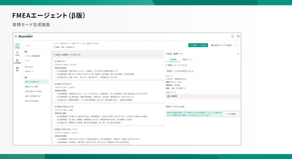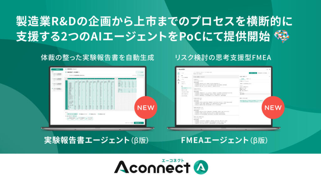 国産生成AI基盤の独自開発およびビジネス向け生成AIサービスを提供するストックマーク株式会社(本社:東京都港区、代表取締役CEO:林 達、以下:当社)が提供する製造業向けAIエージェント「Aconnect」は 、新たに「実験報告書エージェント」と「FMEAエージェント」をβ版として一部顧客に先行リリースしたことをお知らせいたします。